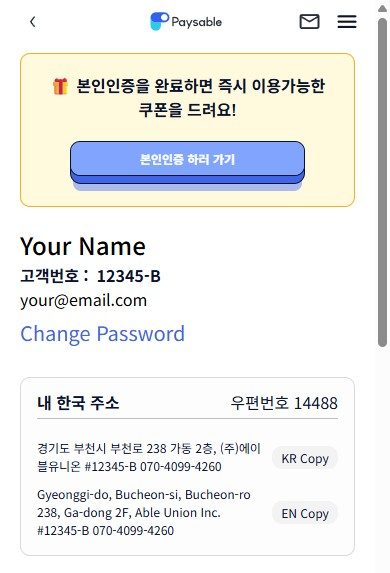 Paysable Warehouse addresses come in two versions: Korean and English.