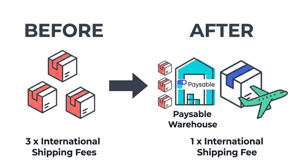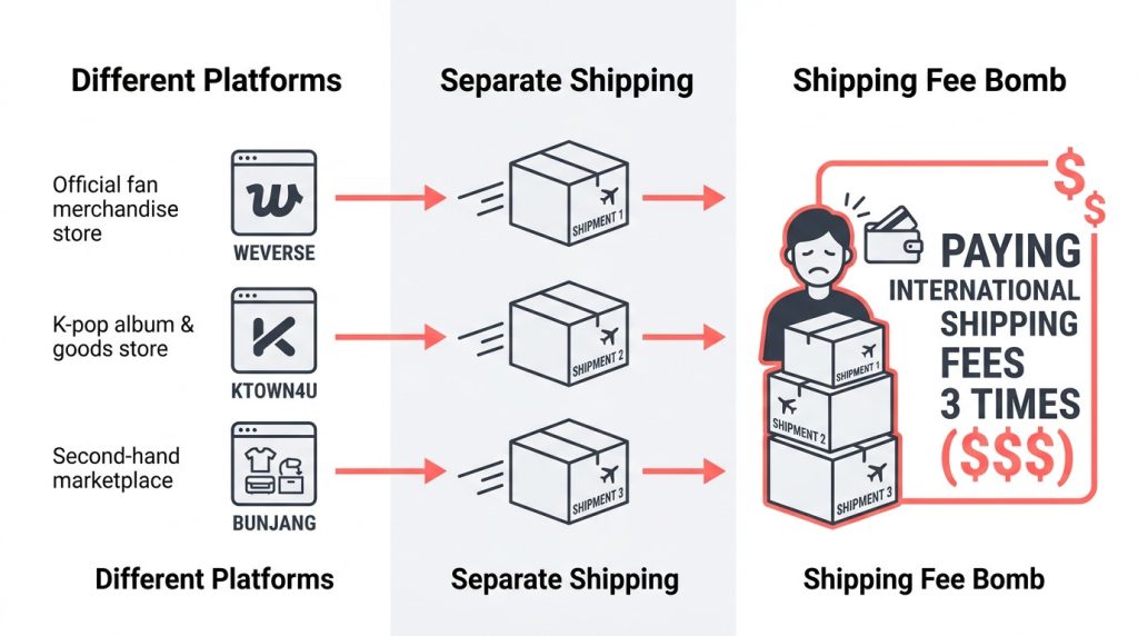 Ordering from three different shops means paying three separate international shipping fees. That’s the core of the “shipping fee shock” problem — not one big charge, but three medium ones stacking up.