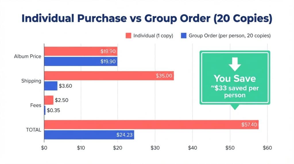The Photobook Version comes in two concepts — “Bangers” and “Challengers” — which is expected to drive strong demand among fans who want to collect the full set. Since the Photobook Version is generally the most popular choice for group orders, all calculations below are based on the Photobook Version at $19.90 per copy.